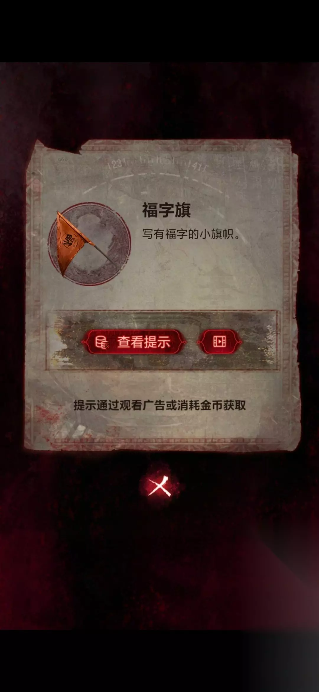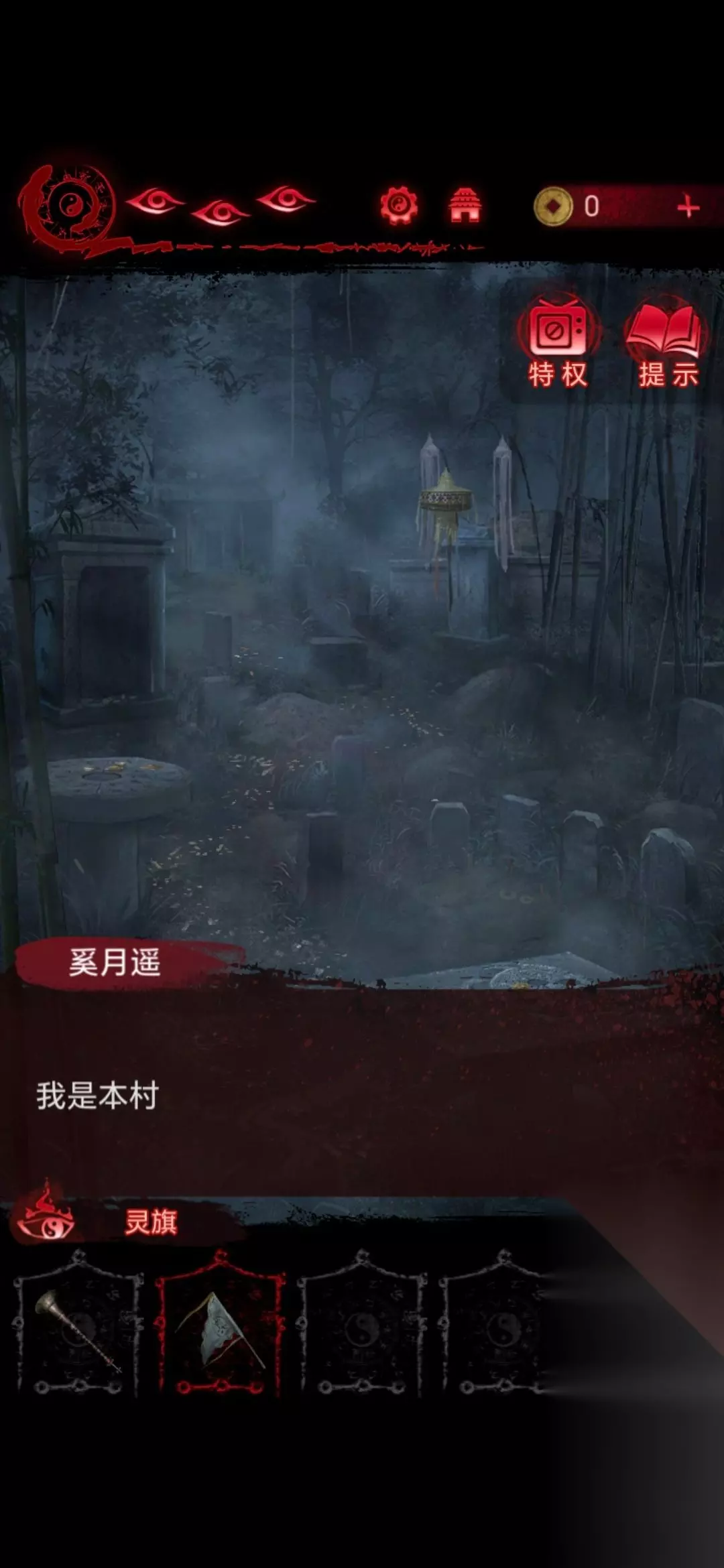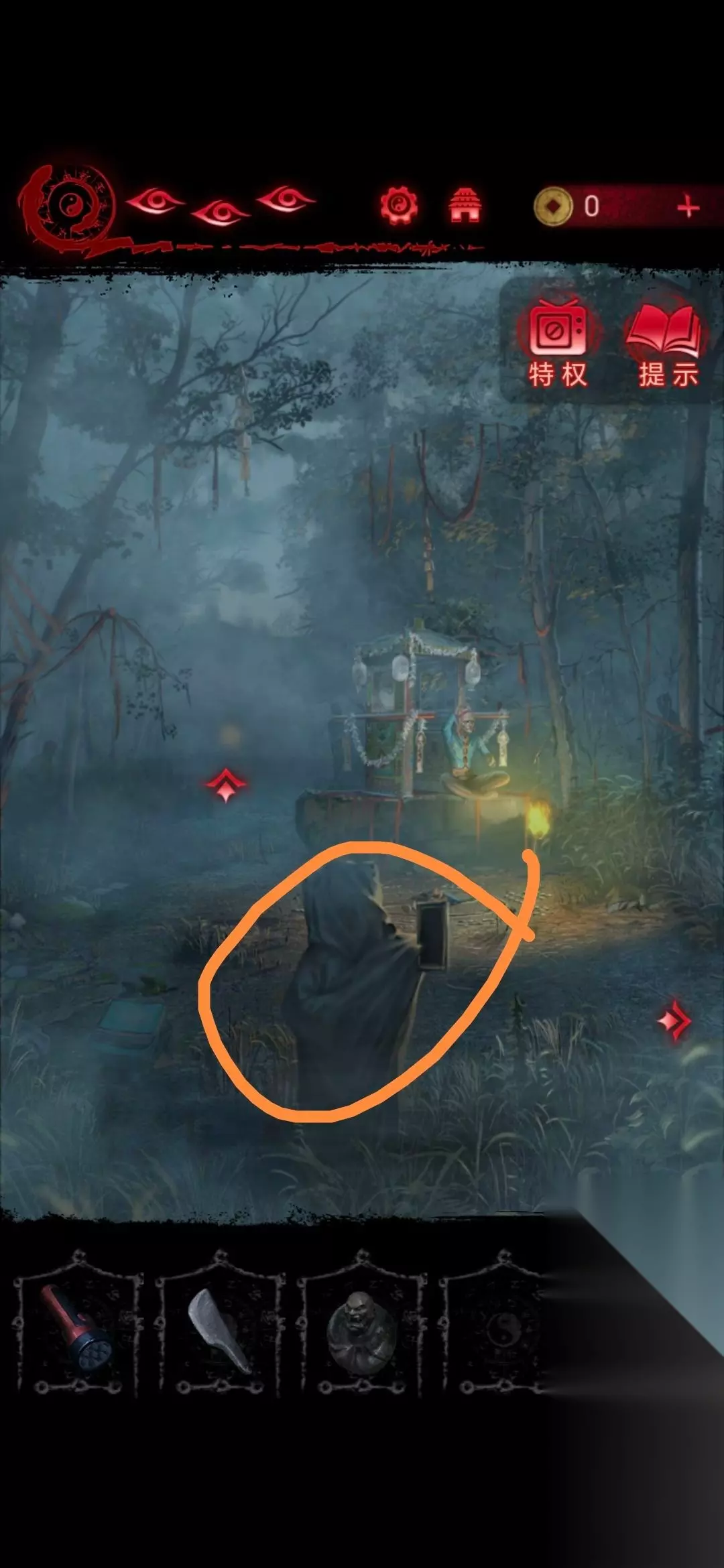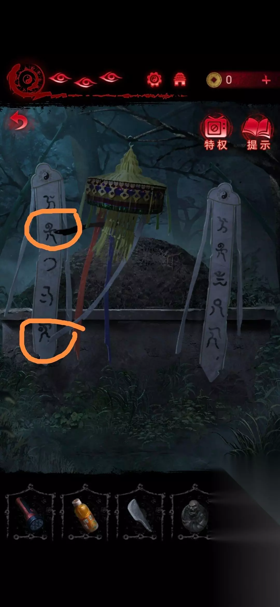 24、将白蜡烛摆放在房间照片前,点击房间左下角的盒子,做小游戏(这个游戏玩法就是遗像脸朝哪边就点哪边,几根香就点第几个字),做完可以获得灵旗;