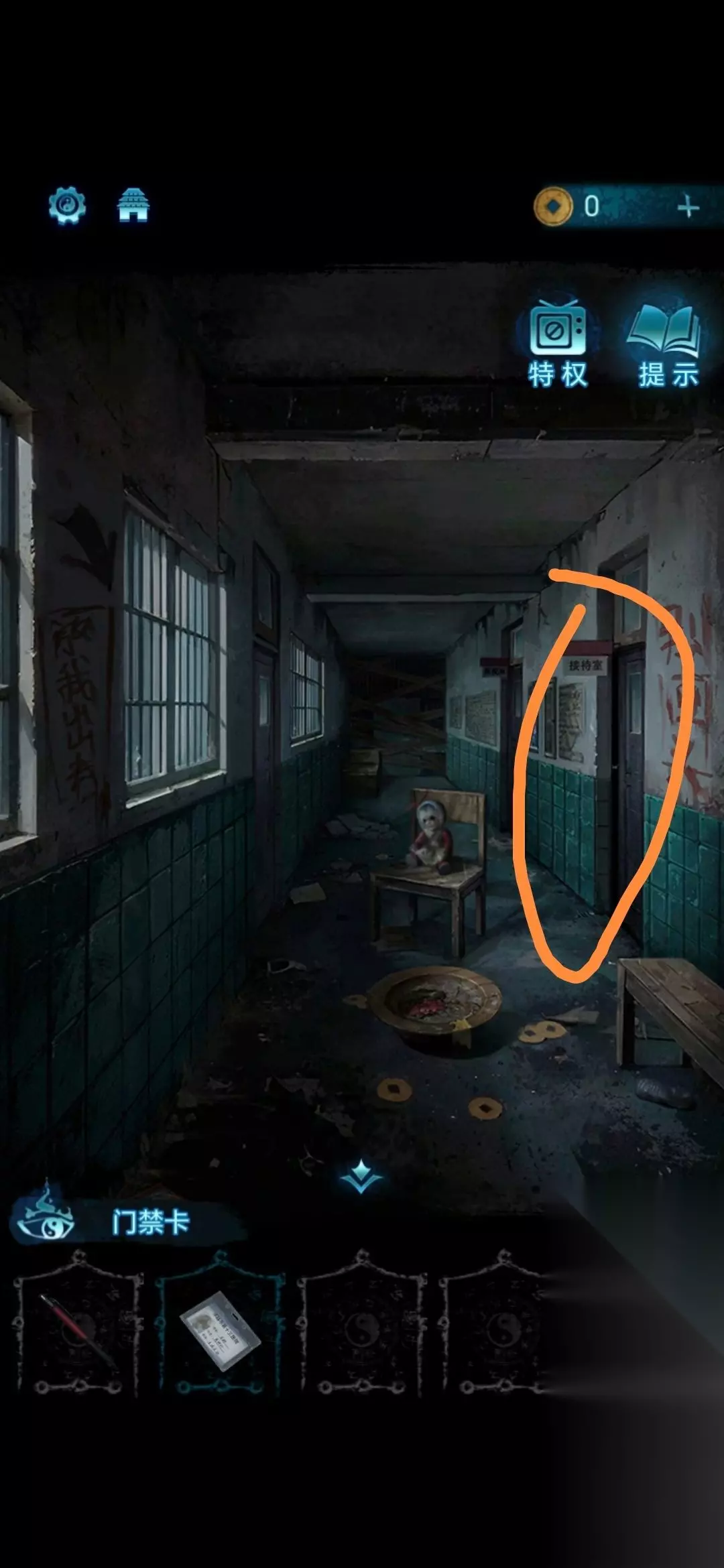5、然后来到下一个场景,使用门禁卡打开右侧接待室的门;
