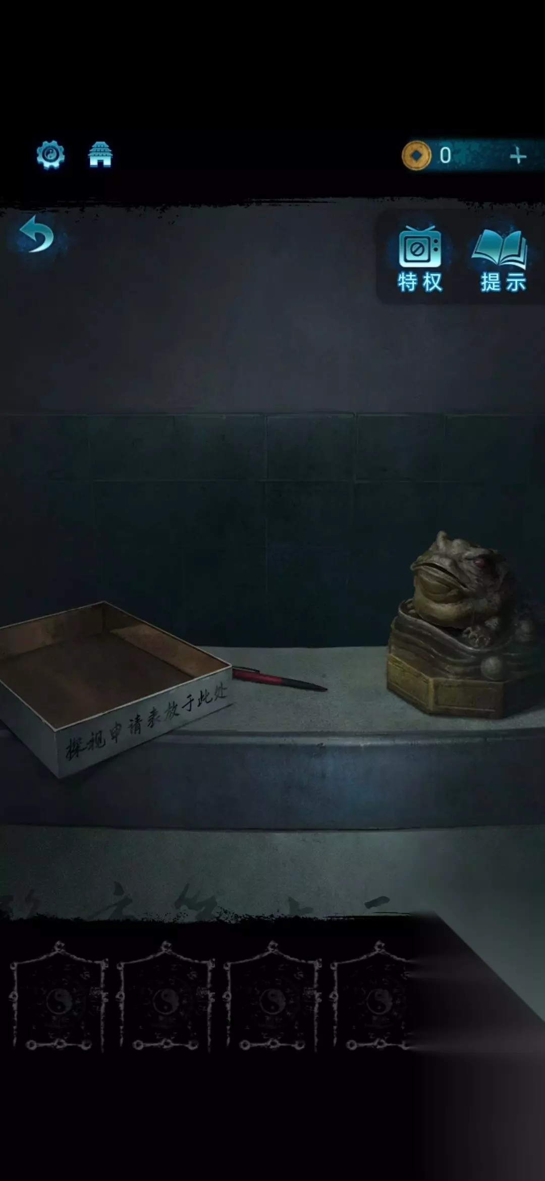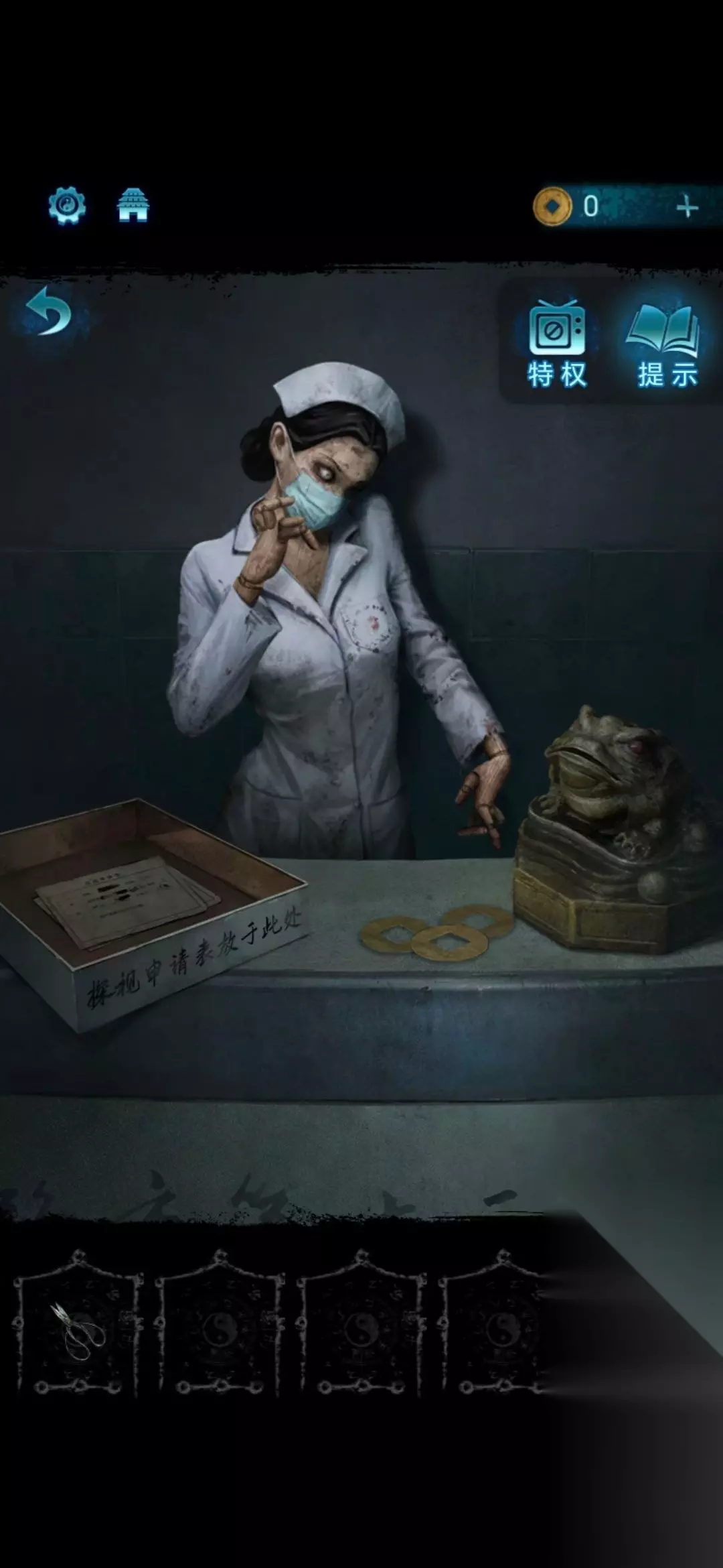 4.前台有一只金蟾蜍。玩家需要将获得的药瓶喂给金蟾蜍,即可获得通行卡;