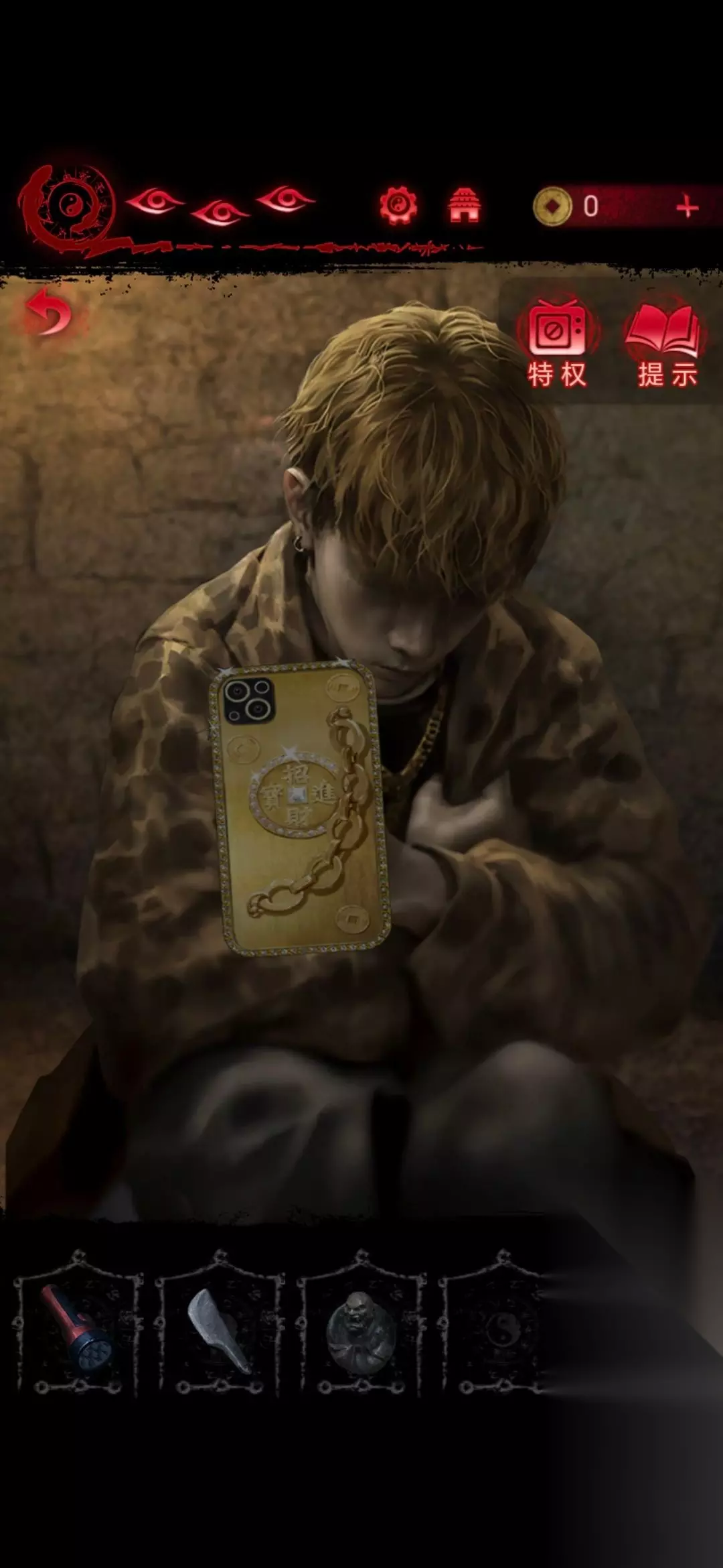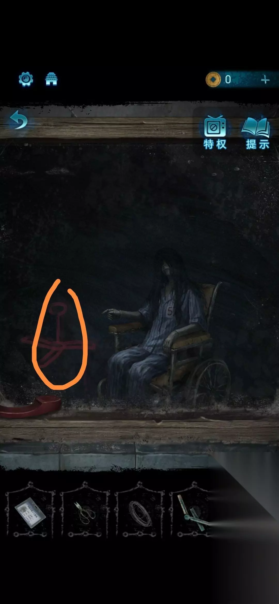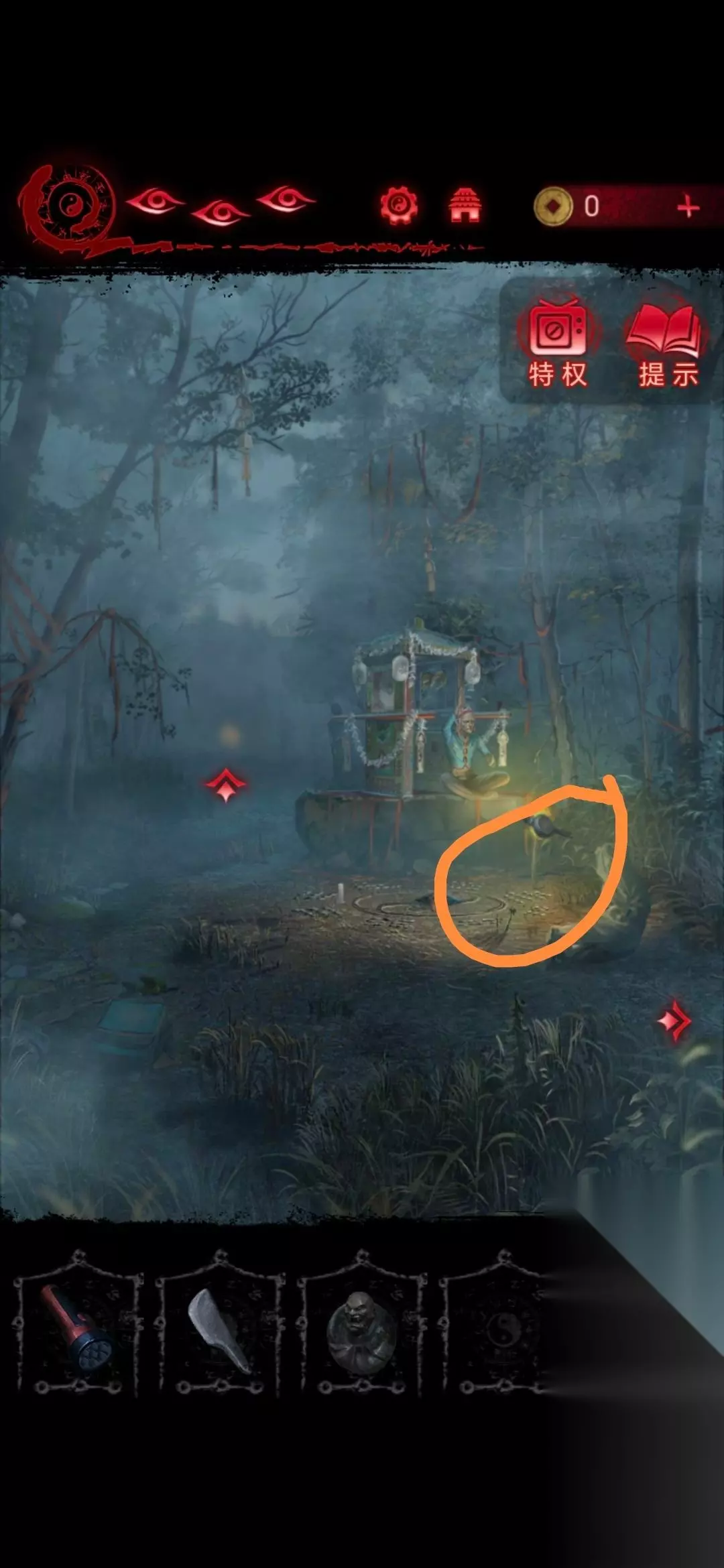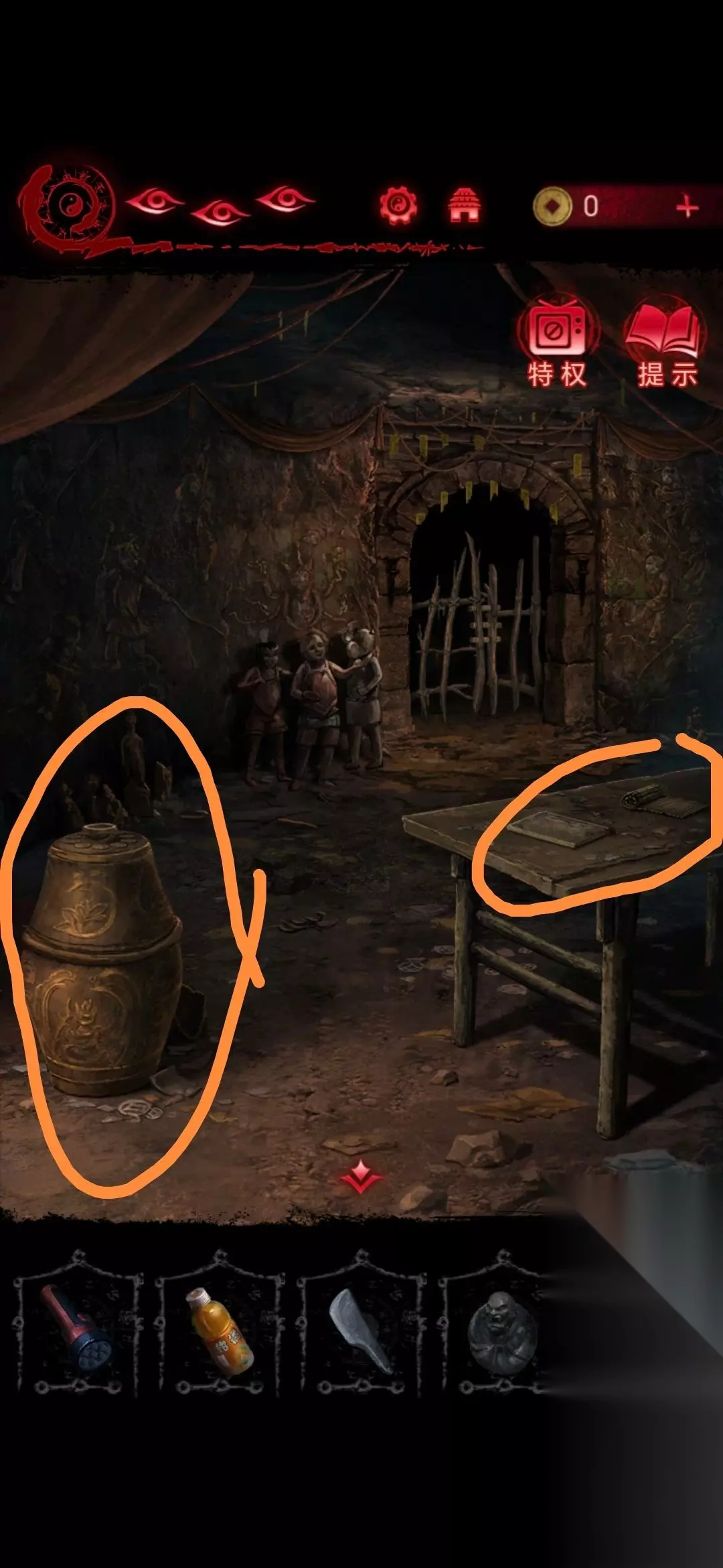 第2章看见邪灵 1、进入第二章后点击左下角书包即可获得手电筒和饮料;