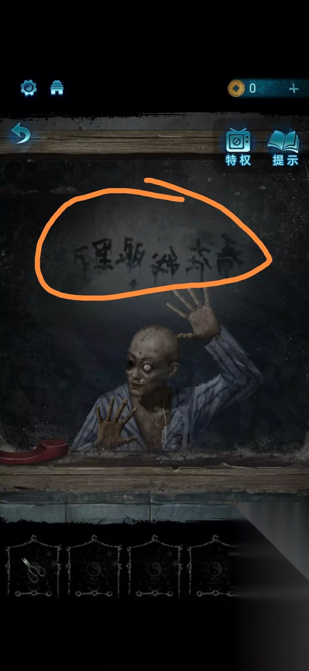 10、进入房间后先点击桌子上的两本书,书中红圈圈中的字按照后面甲乙丙丁戊的顺序为【灵塔葬阴寿】;