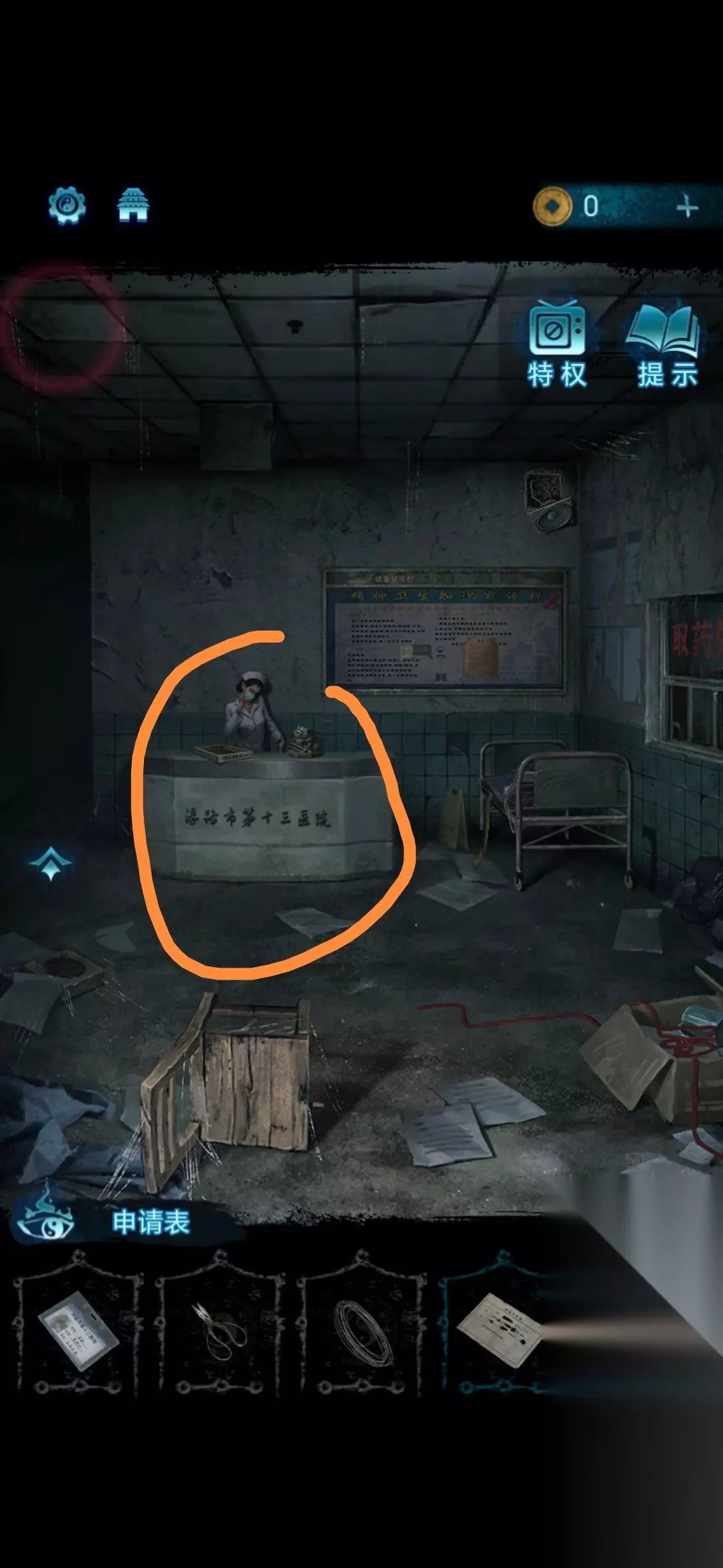 18、再次回到前台,玩家将申请表放入前台盒子内,进入探视室(护士抽搐小高能);