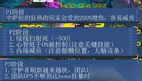 阶段二: 1、BOSS会刷新三种触手,其中要与被缠住的玩家保持一定的距离。 2、打的时候要先消灭触手然后一起去打大脑,在技能套结束前一定打完就行了。