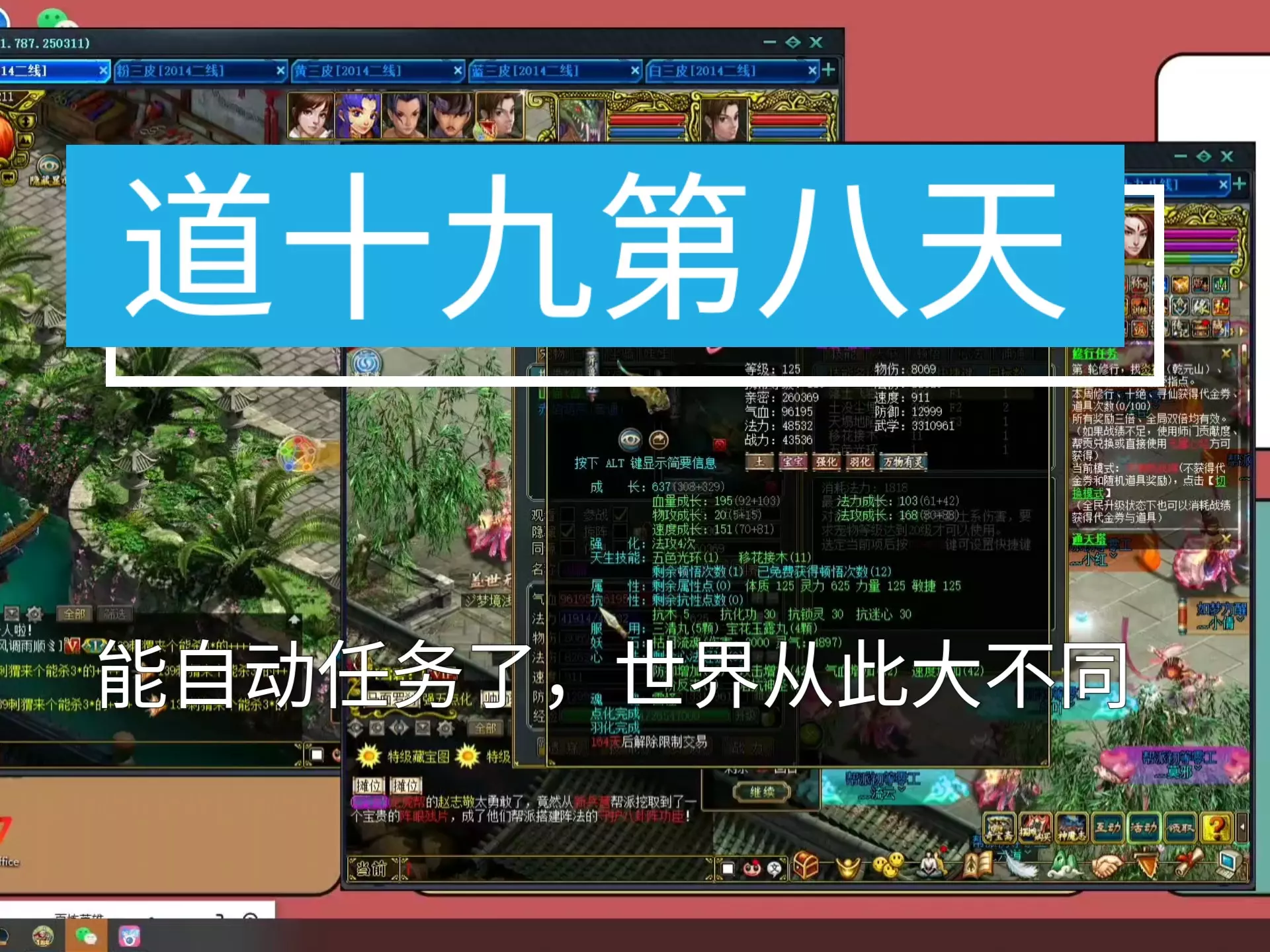 这是《问道》零充修仙之路游戏实况第十六期上,展示了游戏内的战斗场景,还出现了十八周年结婚纪念卡,作者在游戏里看中了三件装备,表达了想拥有的意愿。