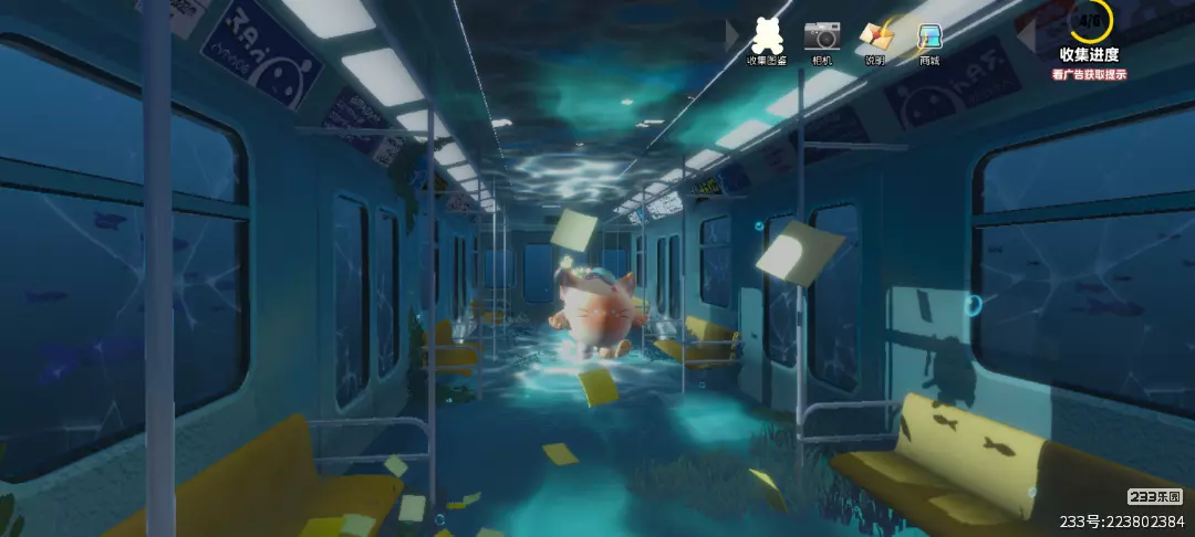 地图开始会有提示哦,右上角是收集进度和收集图鉴等等,偷偷告诉你们第一个收集的小熊就在车厢的座位上哦,靠近后点击小熊上边的收集就可以啦💙