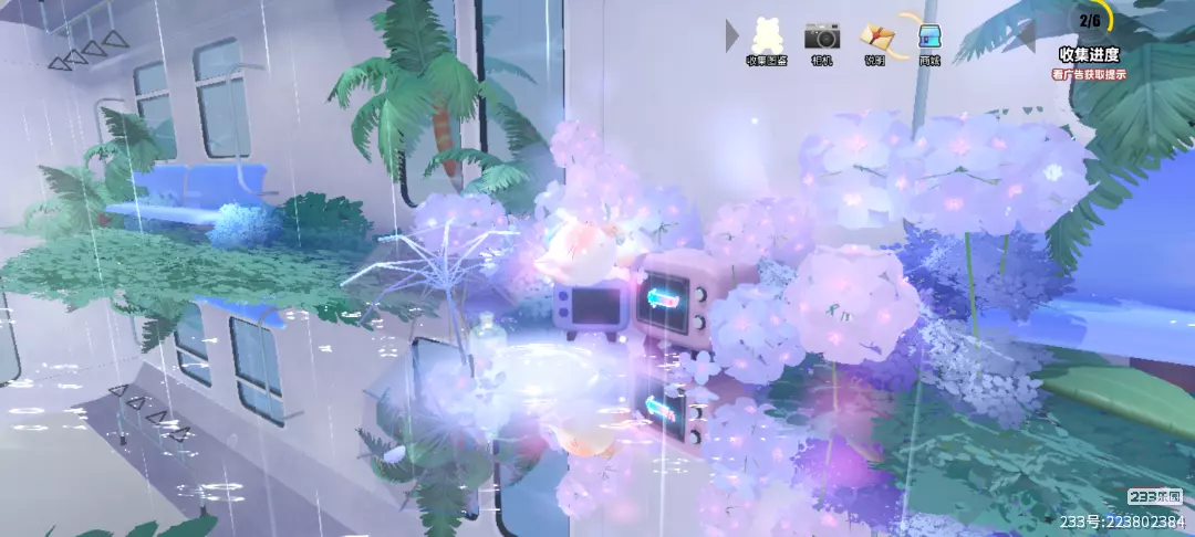 是一个绣球花主题的场景哦,雨滴在车厢里,和这里小打卡点的绝美风景搭配在一起,看起来真的超级有氛围感哇~