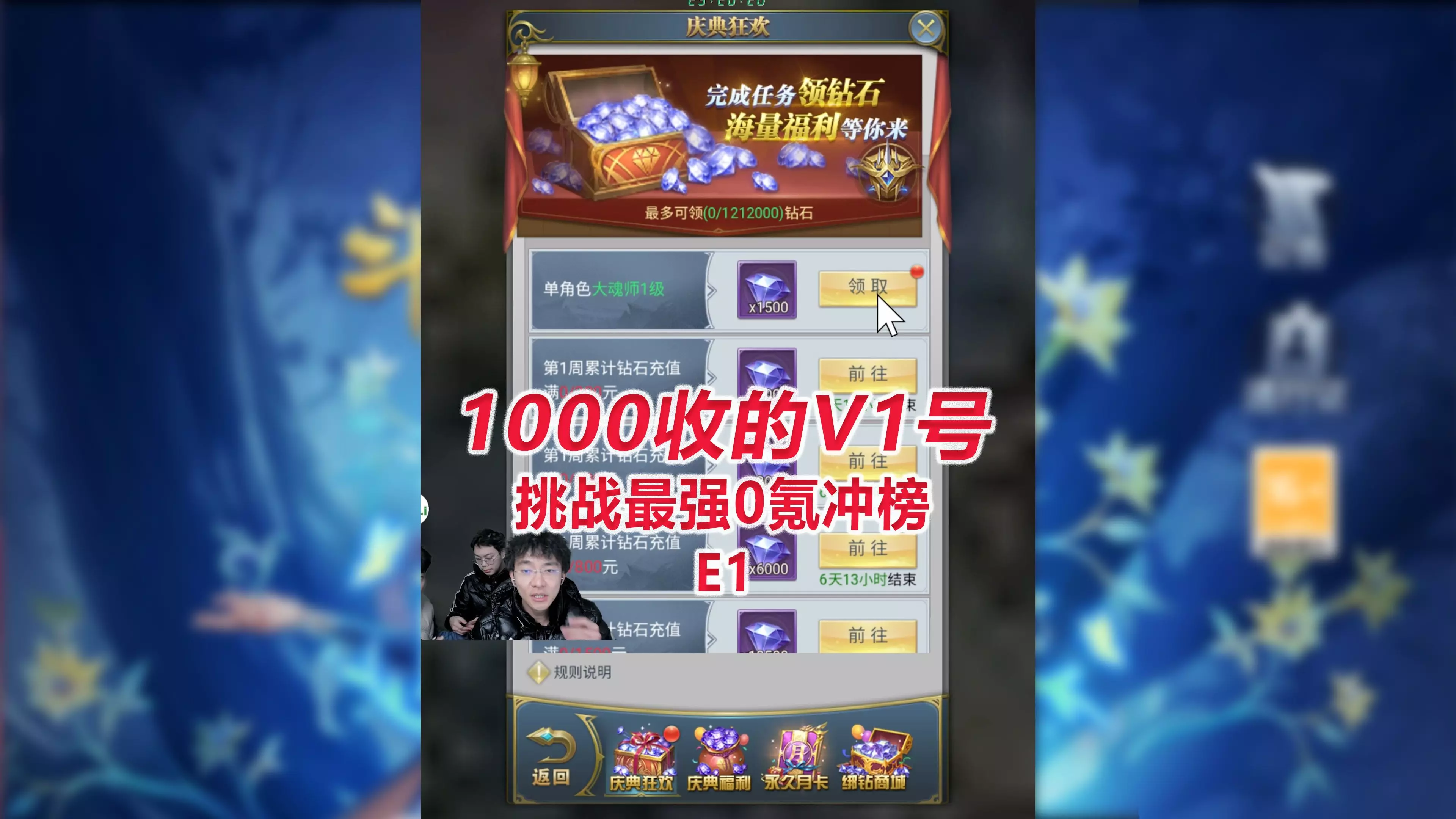 这是我花1000块收的号,以前是一个V15,刚好有回归资格,在新区可以白领很多钻石,所以几乎可以说这是史上最强的0氪账号了,一起来看看能领多少钻石,加多少战力吧…