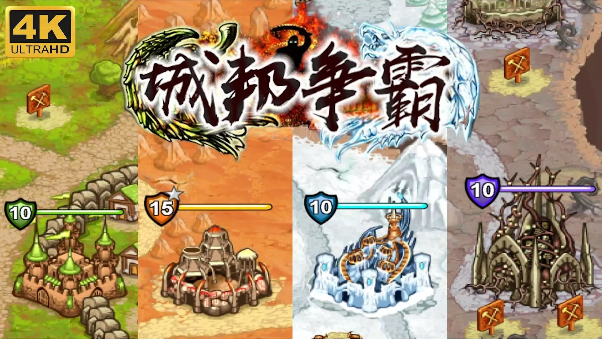 这是《城邦争霸》Takeover西里亚公国关卡的游戏解说,展示了无技能点情况下1-8关卡的通关过程,画面呈现了关卡内的建筑布局、战斗单位部署等通关操作细节。