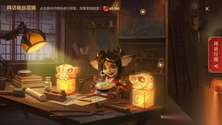 第一步:启动任务!找到你的门票 想见到我们天才武器发明家崔丝塔娜?你得先拿到“入场券”! 主界面出发:打开游戏客户端,直奔活动中心! 锁定专题:找到“提莫的传家宝”专题活动页面。 领取委托:在活动页面中,找到“崔丝塔娜的委托”任务,爽快点击解锁。搞定这步,你就正式获得了拜访这位约德尔天才的权限! 进入房间:解锁后,页面右侧通常会有一个闪闪发光的“拜访行程”或类似按钮。大胆点它!系统会像贴心的向导,直接把你传送到崔丝塔娜的任务房间。 关键提示: 只有正确完成以上步骤,房间内的 三个关键线索才会亮起可交互状态!没看到线索?先检查任务解锁了吗?