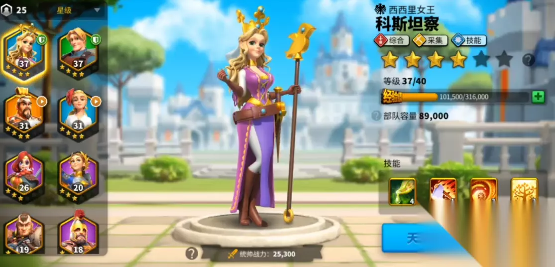 蓝色品质的科斯坦察、萨尔卡和马略是采集三巨头,需要优先升至37级并点满采集天赋。百夫长作为绿色将领中唯一的采集专精英雄,培养成本极低但收益显著。这些将领能大幅提升资源获取效率,为军事发展提供后勤保障。需采集将领只需提升特定技能,无需投入过多通用雕像。