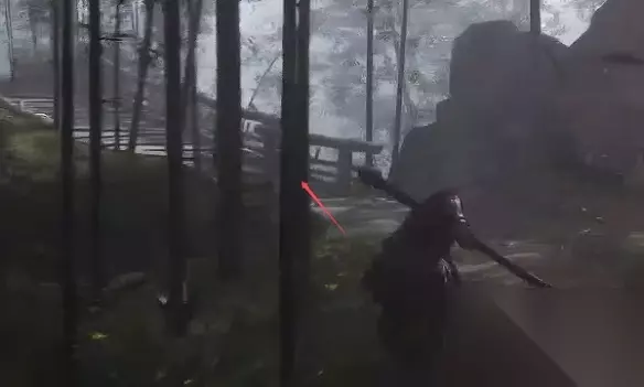 3、打败妖怪,走过独木桥,朝桥头11点钟方向前行,若能看见一扇木制框架大门,则为正确路径。