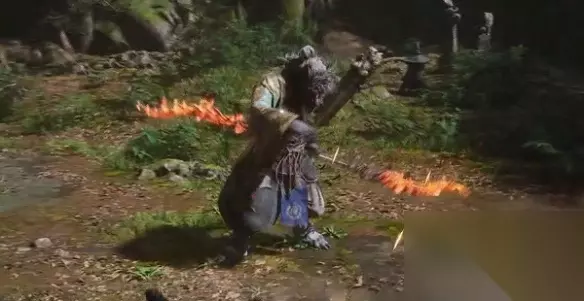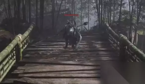 2、击败小怪后,继续前进至桥梁,会遭遇一名持斧的妖怪,此为正确路线。