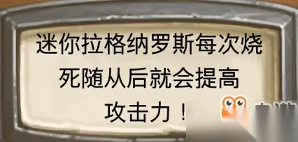 会出现一只迷你的拉格纳罗斯,它是无敌的,并且会通过烧死随从不断成长。如果让他烧死更多的随从,还会获得神秘奖励。