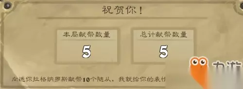最后获胜后会有一个这样的评分版,如果你献祭足够多的随从,还会有特效哦! 献祭10个随从:获得1级特效 献祭30个随从:获得2级特效