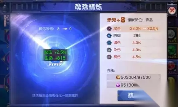 在给剑客搭配好魂珠后,接下来就可以进行魂珠精炼了。 魂珠在每次精炼时都会提升魂珠的主属性,尤其在每三级都会随机强化或出现一条副属性;武士大人们在精炼时可要注意这点。 如果运气不错,恰好强化到了你期望的副属性上,或者出现了额外的副属性,那么恭喜你,你的剑客的实力更上一层楼了! 精炼魂珠的材料多数是靠分解魂珠来获得的,同时游戏中内还有一些活动、任务也可以获得相应的材料,所以各位剑客大人要积极参加每天的游戏活动哦~