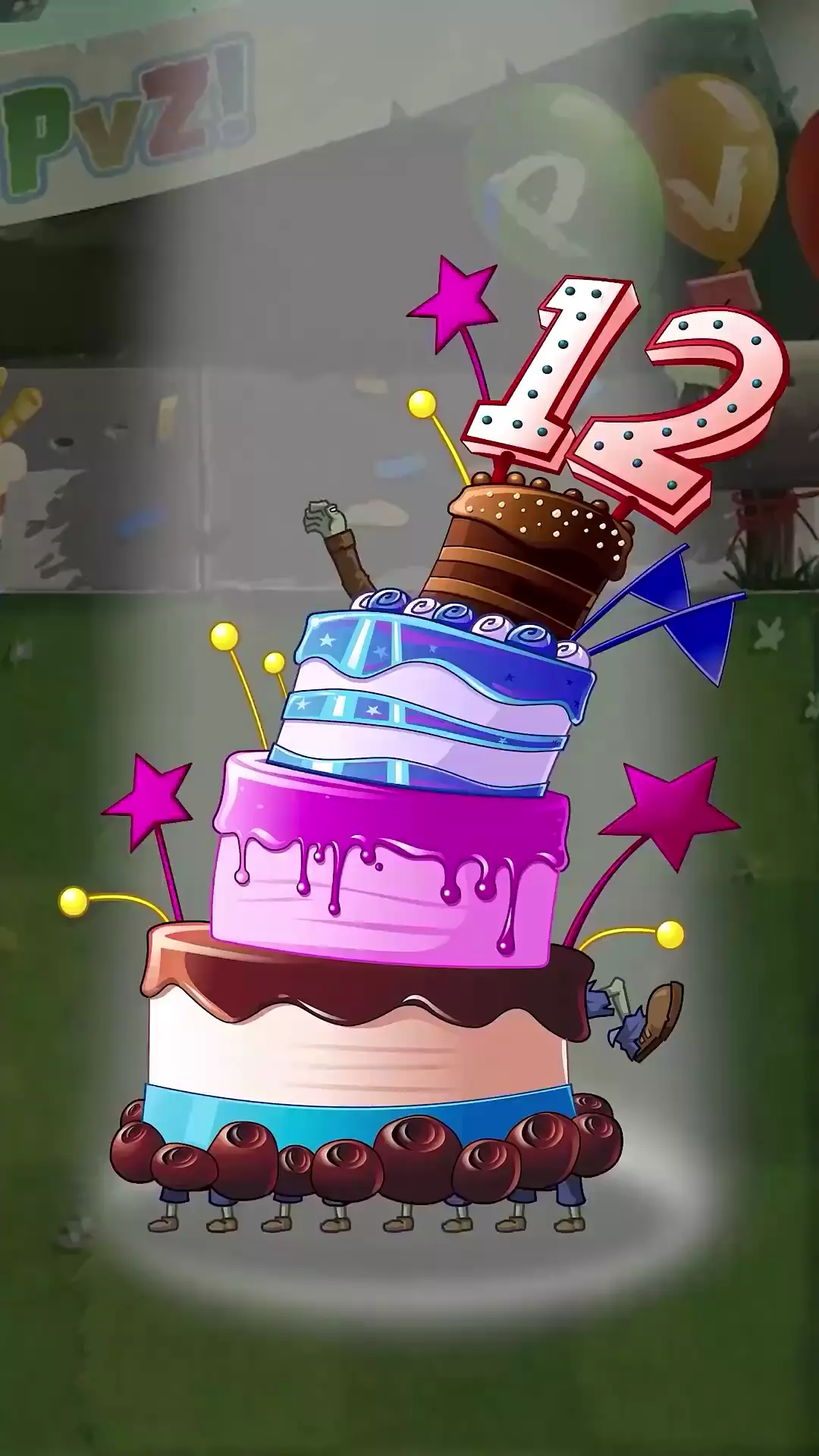 藏着许多“惊喜”的大蛋糕,一起庆祝《植物大战僵尸2》的 12 岁生日吧!