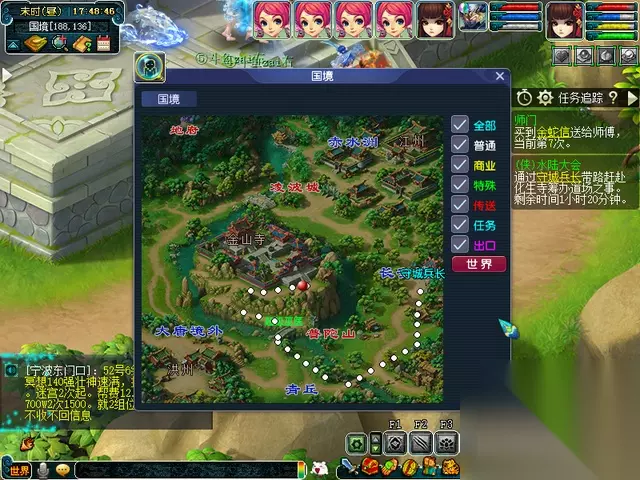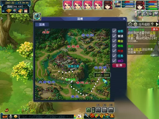 邀请任务(找人) 先到化生寺门口找长安传送人 然后按照给的坐标找就行