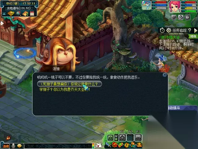 装潢任务一,修理桃树 到达任务坐标点击桃树,有几率触发战斗 这里带攻宝宝杀就行