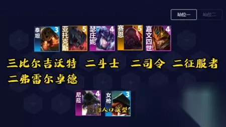 为什么别人玩尼菈能把把前二?而你连吃分都困难?很可能是你的思路出了问题。在这里,我们为您带来国服王者尼拉的理解,帮助您学会如何稳定吃分。话不多说,让我们直接开始千分级的教学吧。 这套阵容由寒冰女枪、泰坦猪妹尼菈、皇子、剑魔、塞恩组成。 三、比尔吉沃特、二斗士、二司令、二征服。 二、弗雷尔卓德的阵容。 八、人口成型,塞恩没来之前可以用任意斗士过渡。 八人口没剑魔就补任意5费卡,九人口补大头或者船长。