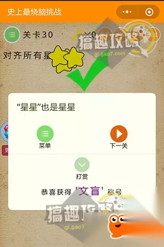先摇一摇设备,树上的苹果会小下来,现在算得出有几个了吧~ 史上最烧脑挑战第30关攻略: 对齐所有星星。
