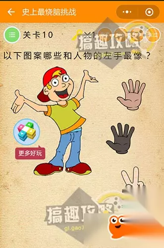 点击装饭的碗~ 史上最烧脑挑战第10关攻略: 以下图案哪些和人物的左手最像?