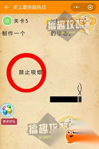 答案是7个~都找到了么~ 史上最烧脑挑战第5关攻略: 制作一个禁止吸烟的标志。