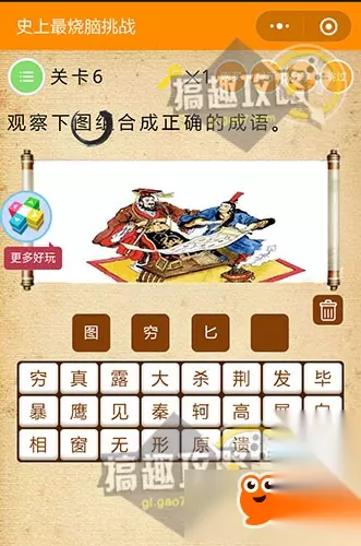 直接将题目上的“禁止吸烟”拖动到红圈里。 史上最烧脑挑战第6关攻略: 观察下图组合成正确的成语。