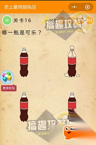 同时点燃两根蜡烛即可~ 史上最烧脑挑战第16关攻略: 哪一瓶是可乐?
