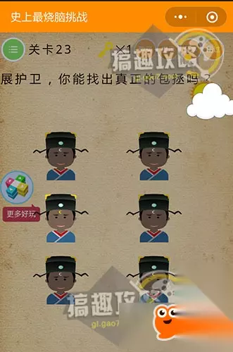 直接点假发和题目上的“小丸子”即可~ 史上最烧脑挑战第23关攻略: 展护卫,你能找出真正的包拯吗?