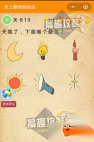 顺序是草莓、梨、西瓜 史上最烧脑挑战第19关攻略: 天黑了,下面哪个最亮?