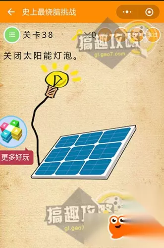 颠倒下设备就能看到倒出来的水~ 史上最烧脑挑战第38关攻略: 关闭太阳能灯泡。