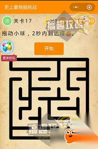 摇一摇设备,哪个会喷气就是可乐咯~ 史上最烧脑挑战第17关攻略: 拖动小球,5秒内到达终点。