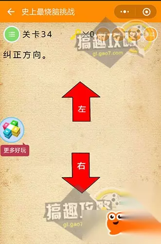 直接在框里打入“答案”即可~ 史上最烧脑挑战第34关攻略: 纠正方向。