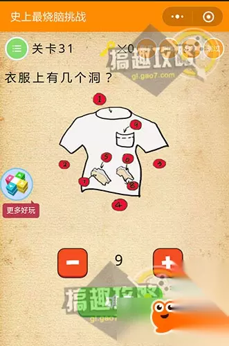 将下面的星星全都移动到题目的“星星”上。 史上最烧脑挑战第31关攻略: 衣服上有几个洞?