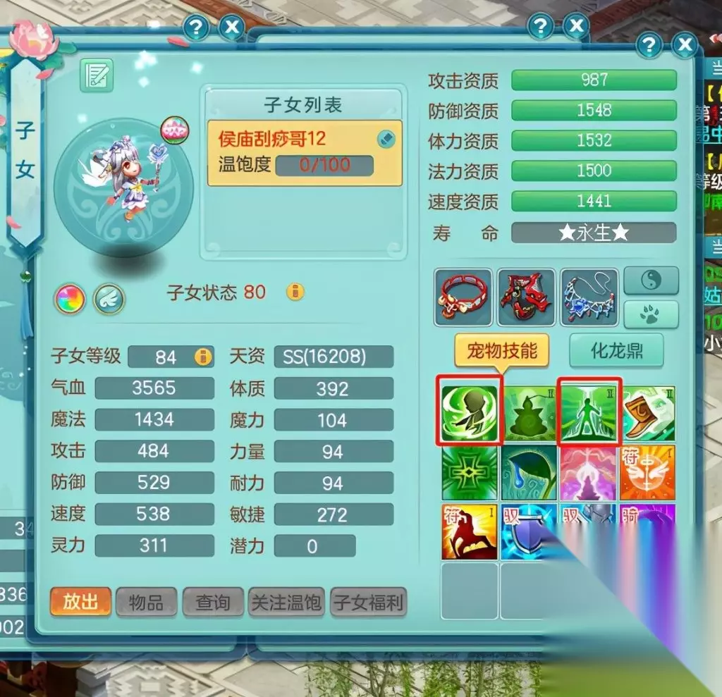 而普陀孩子则胜在其全面的泛用性,自带技能神佑、回魂甘露、灵贯三界、愈伤术,打书方面推荐高神佑、高敏捷、高强壮、高防御、高幸运,无论是日常玩法中还是PK战斗中都能起到很大的帮助。