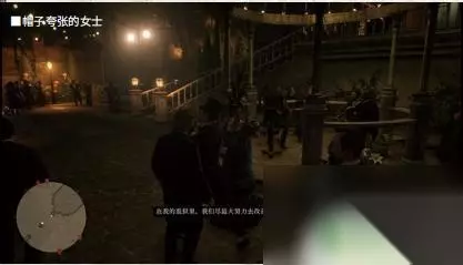 1. 剧情过后,范德林德帮的各位决定分头行动。从右边的楼梯下去后,面对玩家的有三位女士,玩家可以给她们倒香槟 ;在有乐队演奏的亭子前,有一位帽子非常夸张的女士,和她对话可以称赞其衣着 ;在喷水池和亭子之间有两个男人在聊天,靠近他们(不要靠近喷水池)。他们会送给亚瑟剧院的票,接受 ;回到亭子的位置,继续往派对的左边前进。会发现一个男子被核果卡住了喉咙,此时玩家可以伸出援手。确定所有可做的事情都做完后,就可以前往喷水池触发剧情了。