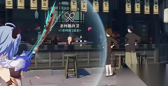 2、在凯瑟琳的对面找到志村勘兵卫,然后点击互动,然后选择想看看菜单。