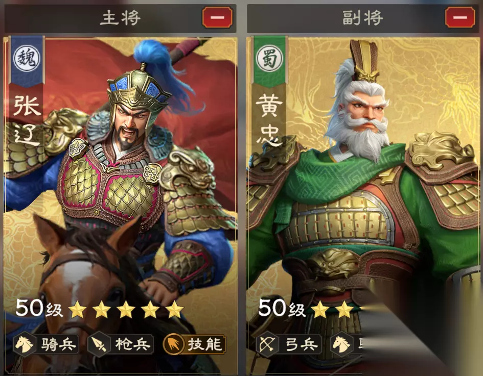 兵种:禁军(击飞、提升暴击) 推荐阵法:双龙阵 张辽可给部队每秒提供怒气,在武将释放主动技时概率获得高额怒气,可大幅提高怒气获取,提升部队主动技释放频率。队伍的主动技释放频率越高,黄忠“老当益壮”就可以多次判定,来进一步提升主动技释放次数。 队伍简评 张辽搭配黄忠,技能释放频率会比搭配赵云更高,更高的技能频次可更快的压低敌方兵力。在实际配置的情况下,大家可基于武将练度灵活选择,黄忠一定是“老当益壮”有较高等级才能用。 武将替换 上文的两支队伍,都是“双回怒”机制,侧重于提升技能释放频率,在爆发、持续作战的场合都能打出较高伤害。