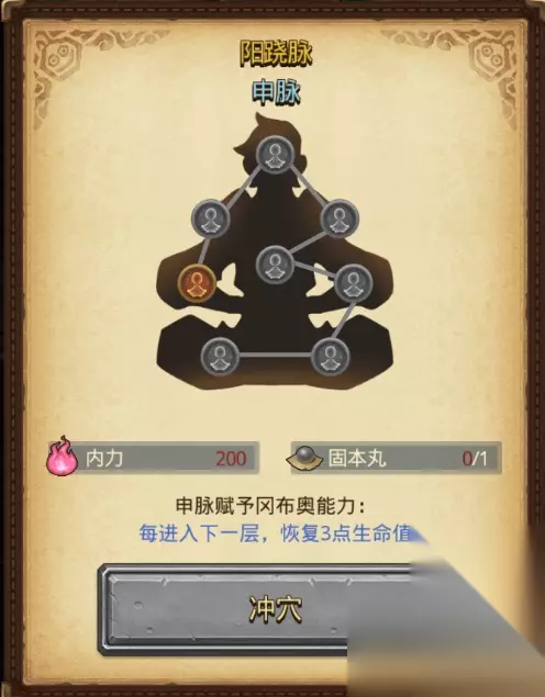 经脉的内力要求基本不是问题,主要限制是固本丸和培元丹的限制 这两种丹药在江湖小贩和门派商店购买,门派商店4阶以后一次可以买很多,但也意味着消耗大量探索点 如果要做经脉全部打通,内力15000是必定达到的