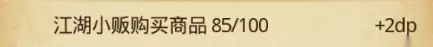 江湖小贩 初始出售6件商品 铁蒺藜*2 (200) 回神草*1 (200) 龙鳞草*1 (100) 烧酒*1 / 百草酒*1 (100) 固本丸*2 (200) 培元丹*1 (500) 若有以下秘籍未获得,则随机出售一本 《金钟罩》*1 (300) 《掷器诀》*1 (300) 《冲虚养气》*1 (300) 《回天术》*1 (300) 《步步生花》*1 (300) 《伏虎拳》*1 (300) 《珠落玉盘》*1 (300) 《横扫乾坤》*1 (300) 勒索可获得凝草x1 或 七霞莲x1 ,各上限2次