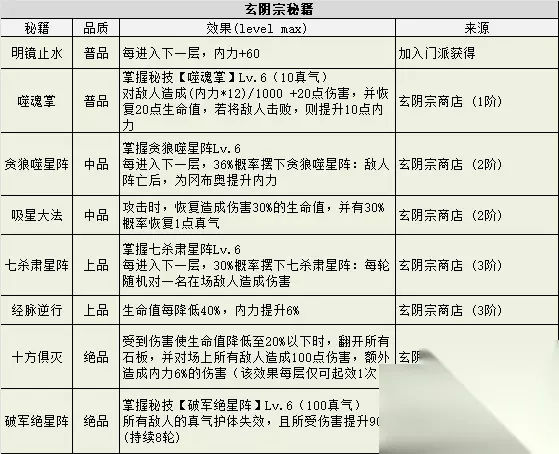 暗器匣 获得 铁蒺藜x3 若已习得《暗器百解》,则额外获得 毒砂x1 绝情针x1若已习得《暗器精通》,则额外获得 孔雀翎x1 7)玄阴宗专属建筑