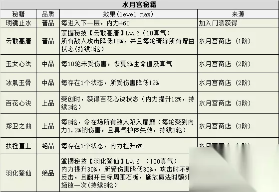 学堂 参悟点 50,并有20%概率提升随机门派类秘籍1级 8)水月宫专属建筑