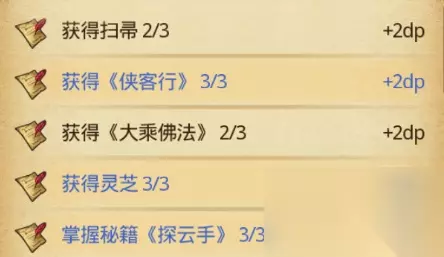 最后来看一下特殊DP 这个迷宫非常缺资源,怪物自带减伤,后期利用门派机制打怪,主要靠内力提升伤害 推荐阵容:商人 帮派 神灯 神器竖琴,匠心药剂,称号 异界 毁灭 大地。 初期建议先玩一下逐锋阁,靠小弟打怪,操作比较简单。 秘籍优先升《探云手》(用来偷秘籍)、门派类秘籍、以及通用秘籍里内力相关的,例如《一气归元》、《易筋经》等。