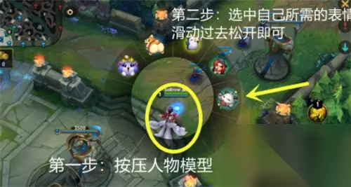 第一种方法: 1、通过长按英雄本身,然后稍等几秒之后就会出现一个表情轮盘。 2、然后拖出想要发出的表情就可以了。 第二种方法: 1、打开聊天框之后,点击右边的表情按钮。 2、进入表情页面之后,点击想要发送的图标就可以进行发送了。