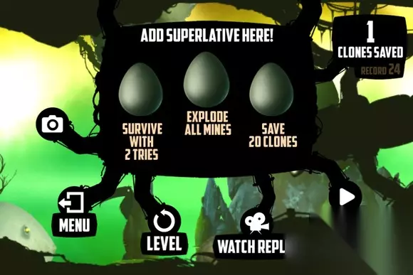 1、2代不可以双人,不过有联网模式,类似于一些游戏的竞技场,在现有的关卡里选出几关来比分数,更新很频繁,顺便2的操作很难做到多人同屏 2、玩了8、9关感觉关卡还蛮有意思的,但是无限复活然我觉得不明意味,后来打开游戏发现这个游戏是有任务的,三个蛋,我就试着挑战了一下,发现这游戏真神作了!! 3、任务难度各种反人类,尤其是引爆全部炸弹的任务!各种鬼畜!因此我对其评价:S+非常值得一玩!