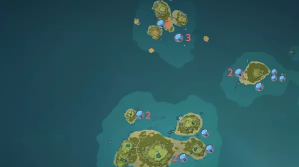 原神海灵芝位置全一览: 由于部分点位海灵芝群位置相近,因此以数字标记部分点位海灵芝数量;仅有图标而未标记数字的海灵芝点位默认数量为1。 1.双双岛区域海灵芝点位: