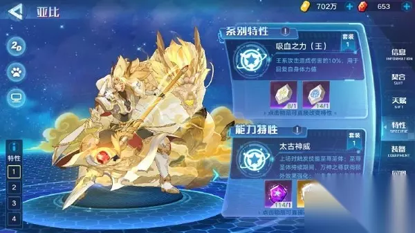 《奥拉星手游》盘古装备特性搭配推荐 1.【特性】 ①速刷:吸血之力(或勐兽猎手)+太古神威 ②pve:吸血之力+太古神威 ③pvp(长图副本):吸血之力(或勐兽猎手)+天地本源