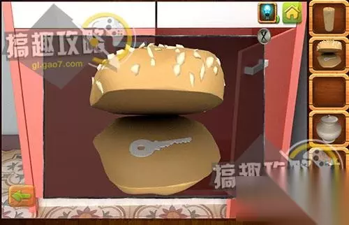 用小刀切开面包,拿到钥匙。