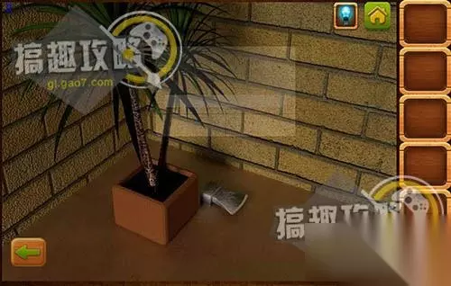 盆栽旁边拿到斧头。