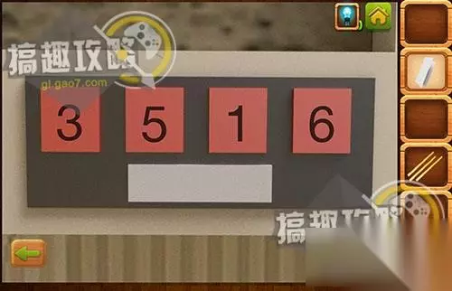 在壁画下面根据纸上的提示调整密码3516.